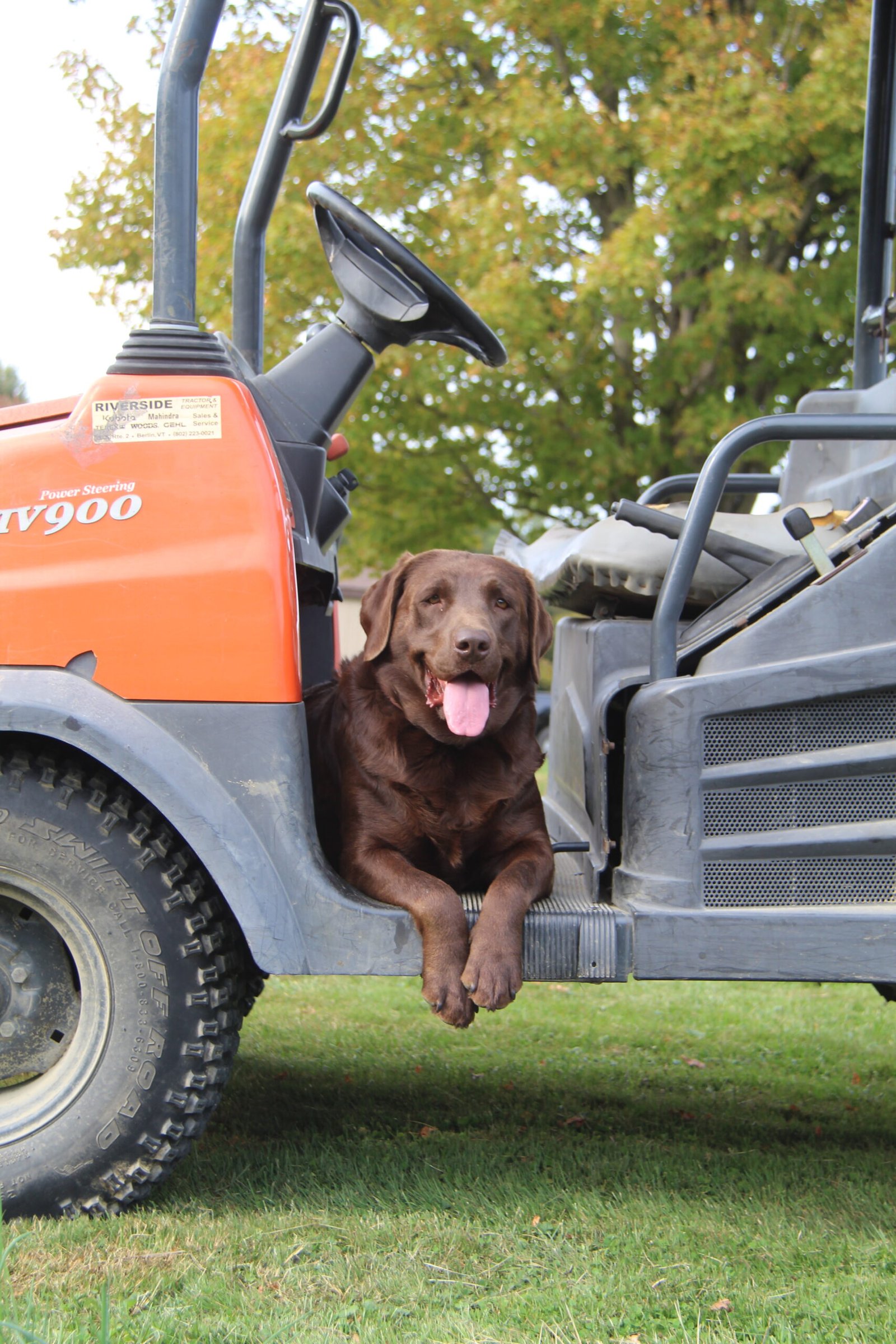 Jetta is our smart chocolate lady from Quail Ridge. She has a fairly laid back personality with just enough spice to keep life interesting. Riding on the side by side is her favorite treat, and if you take a ride without her, she is sure to let you know that she is not happy. She is AKC registered and health tested through Embark and is clear on PRA, EIC, CNM, DM, and HNPK.
